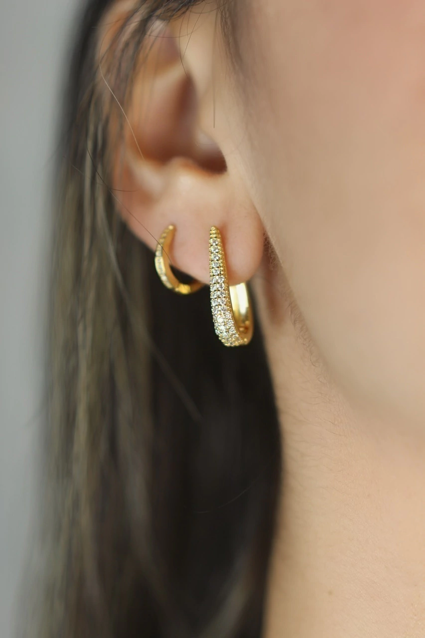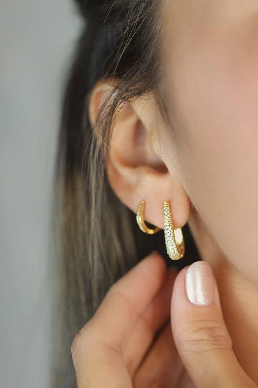 MATERIAL: Brinco cravejado com zircônia. Banho em ouro 18k e verniz hipoalergênico. Não contém níquel em sua composição.