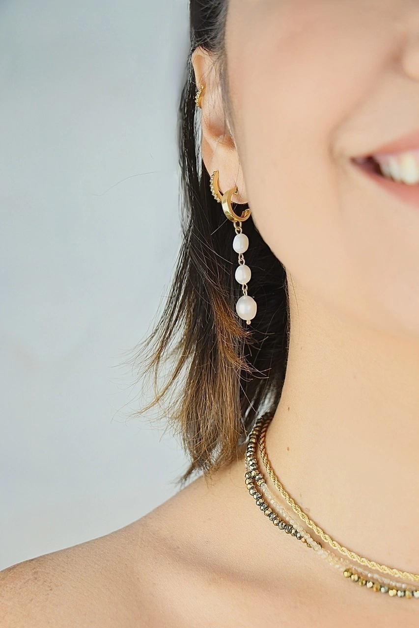 MATERIAL: Pérolas Naturais de Água doce. Semijoia com banho em ouro 18k. Não possui níquel na sua composição.