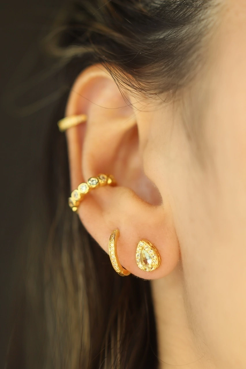 MATERIAL: Semijóia com banho em ouro 18k e zircônias. Verniz hipoalergênico. Não contém níquel na sua composição.