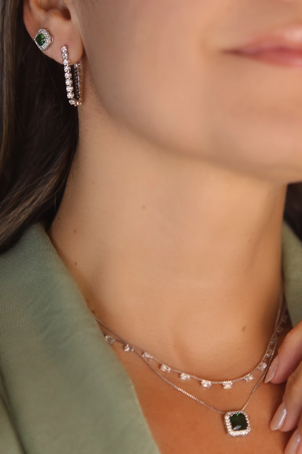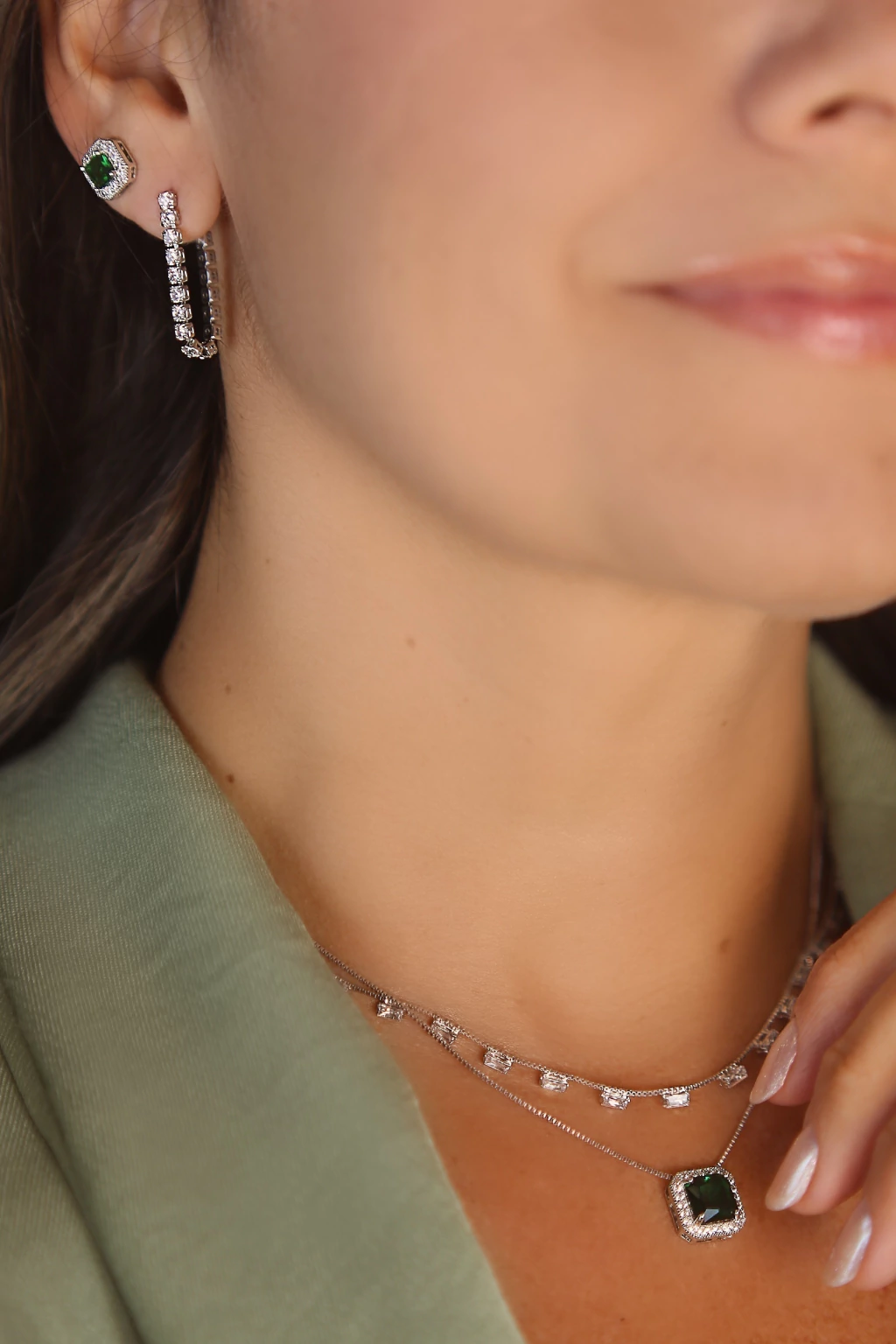 Pedras zircônias retangulares cravejadas com precisão criam um brilho sofisticado ao longo do colar. O banho em ródio reforça sua presença refinada, ideal para momentos que pedem elegância.