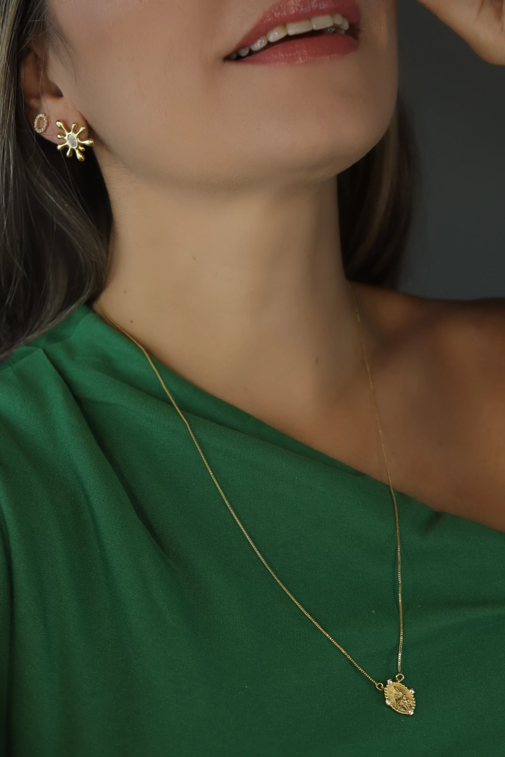 Cada medalha possui delicados pontos de brilho, perfeito para quem deseja carregar no peito aquilo que a alma não solta.